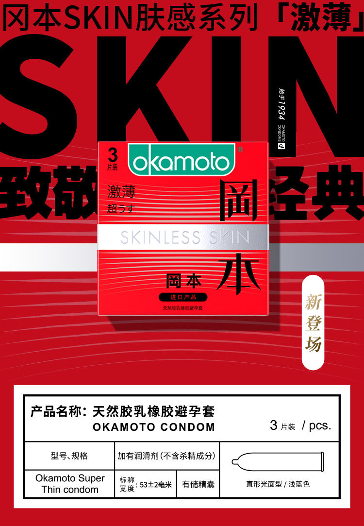 正品冈本激薄3只装避孕套