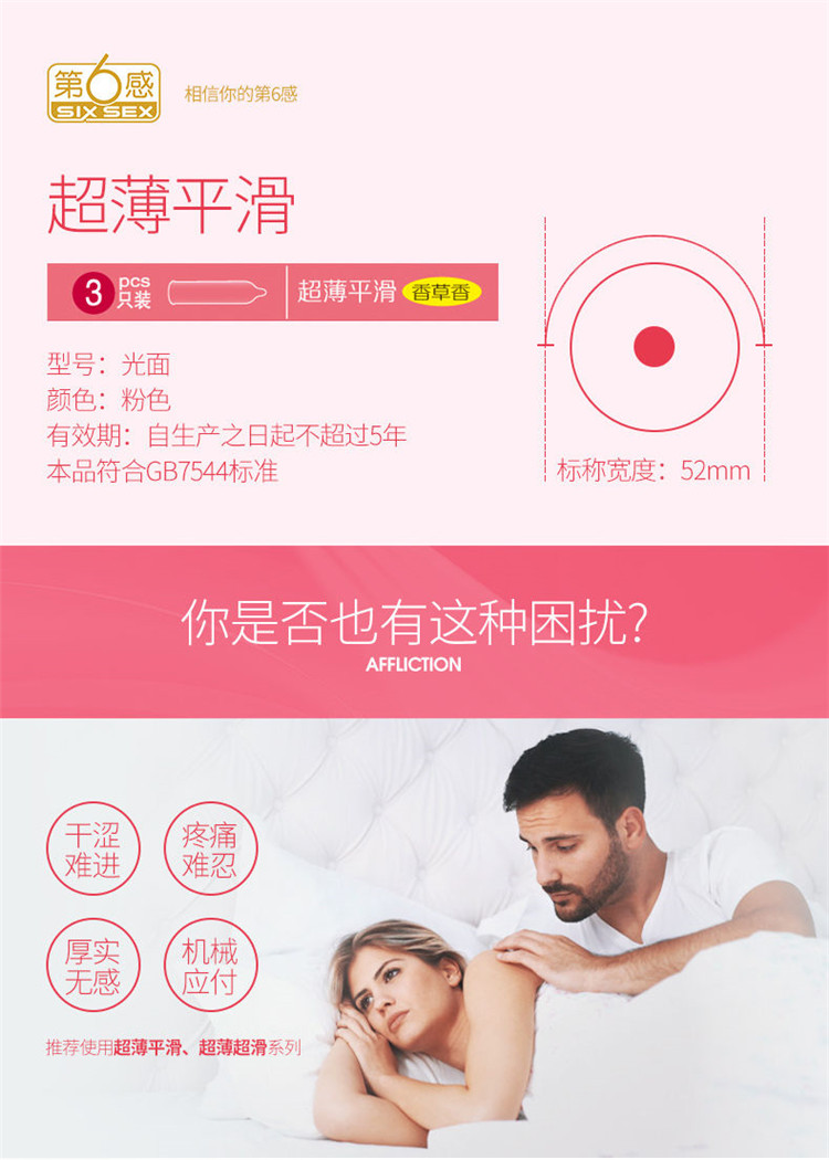 正品第六感超薄平滑3只装避孕套