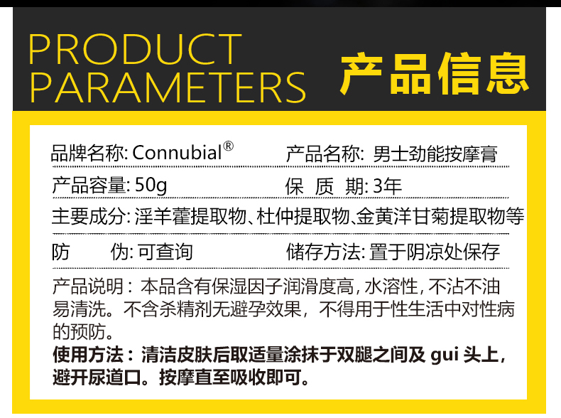 Connubial男士劲能按摩膏-配送仓直发